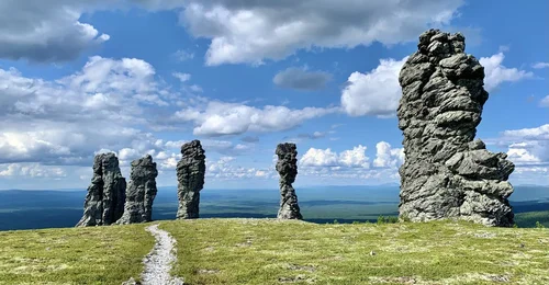 Плато Маньпупунер в сердце Республики Коми открывает взору величественные каменные столбы, окутанные туманом и древними сказаниями. Кинематографистов завораживает призрачный облик великанов на безлюдной тундре — идеальный антураж для эпической фантастики или мистических драм. Интересный факт: по преданию манси, эти столбы — окаменевшее племя, что придаёт скалам сказочную ауру.